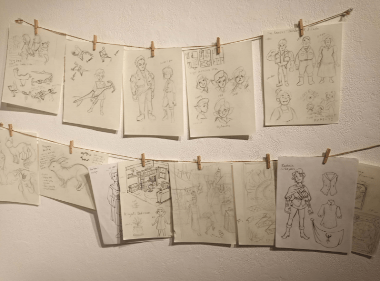 Content Analysis: The story follows the life of a bastard child conceived in during a resurrection ritual performed by her father, and as such, has a few compelling ideas prevalent. In the short storyboard that was included with the piece as a sample, themes of growth and comradery were foremost; the growth of character by learning from mistakes, and the comradery of youth that helped them find the lost pet. But most central to the storyboard was the idea of family, with not only the protagonists serving as a small family of their own, but also with the main motivation of the piece; the pet running away, being centered around him wanting to be with his budding family. The artists were inspired by the cartoons that they had all grown up around and wanted to make a piece like that which influenced their own childhood.